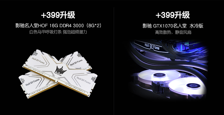当然想要你的主机更有个性追求完美的你还可以升级各种硬件设备,比如跟你的显卡颜色更搭的名人堂HOF SSD自带白色马甲呼吸灯助力光污染,或者把显卡升级到水冷版让实力和颜值更进一步。