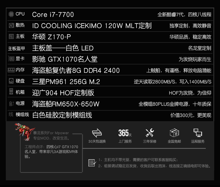 名龙堂作为中国高端定制PC品牌,一直以来都是身处行业前列的位置同时也从未停止前进的脚步,除了自主创新还积极的联合各大硬件品牌开发各种设备,比如联合三星开发M.2散热片,联合华硕开发主板盔甲,联合英伟达推出定制版主机,也包括这台联合名人堂推出的暴龙M90,等等。为了带给你更好地PC体验名龙堂一直在努力,正是这种责任心才让消费者安心。