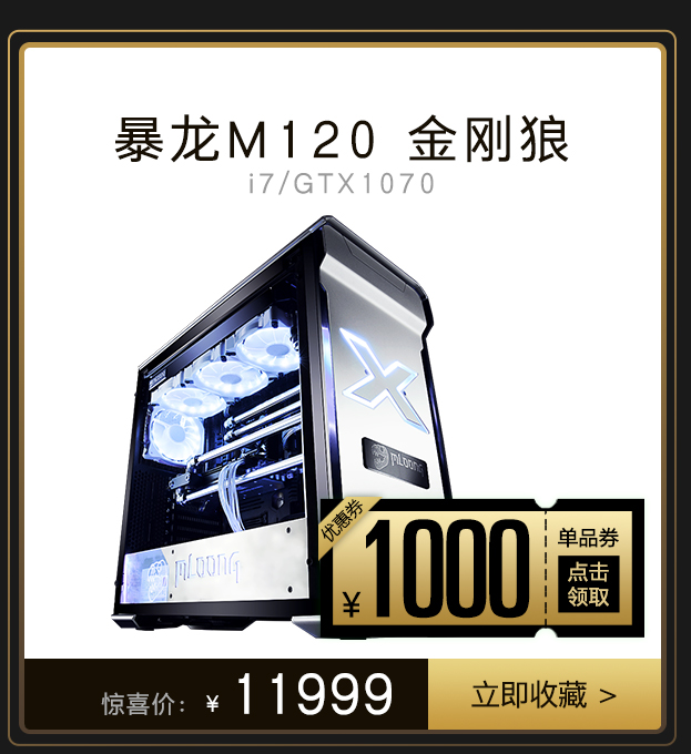 英特尔酷睿I7-7700K处理器,四核八线程并支持超频,与普通PC机不同的是, M120具有极效水冷散热套件,I7-7700K更容易突破温度瓶颈进行更高级的超频使用,系统不过热并且噪音更小,显卡部分采用GTX1070旗舰级独立显卡,可以激发更多的GPU潜能,旗舰级CPU+GPU双剑合璧玩转电竞极限对抗游刃有余。