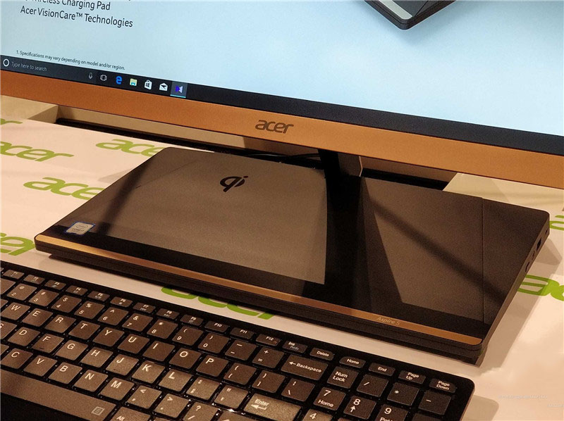 但这些都不是重点,因为还有一个更厉害的是,Aspire S24的底座有一个Qi充电盘,任何支持无线充电技术的产品,都能够放在那里进行充电!