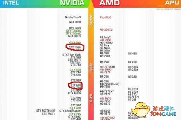 从显卡天梯图可以看出,GTX670显卡属于中高端显卡,而GTX1060是在高端显卡和最高端显卡之间,很明显GTX1060比GTX670显卡要强上不少,所以用名龙堂剑龙G4玩《FIFA 18》是绰绰有余的。
