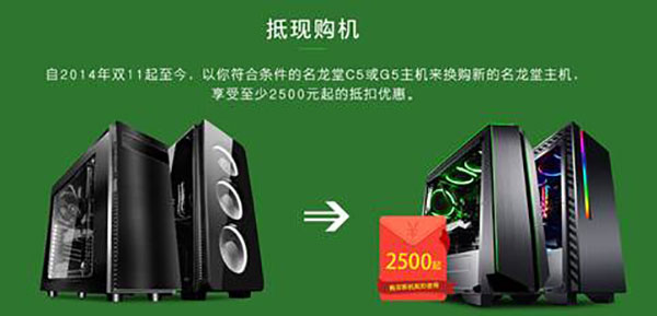 自2014年双十一起至今,在名龙堂购买了C5和G5主机的用户,可以参与名龙堂的以旧换新活动。免费邮寄您的主机给名龙堂,经过专业的评估之后确定您的主机可享受多少元的折扣。至少2500元起的折扣优惠,您可以根据结果再考虑是否换购。