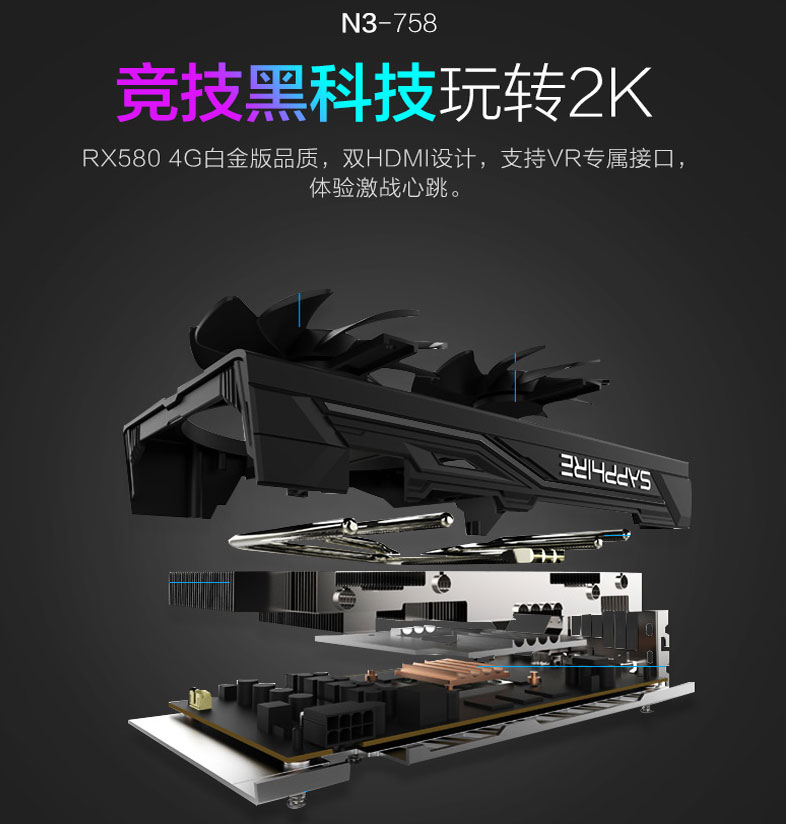 此次预售的宁美i7主机选择了和知名显卡品牌蓝宝石合作,选用了RX 580 4G 白金版 OC高端显卡。不仅拥有双滚珠轴承、风扇智能转停和镀镍四热管等品质用料和设计,更有双HDMI和VR专属接口这样的黑科技配置,为主机带来更加强大的性能。