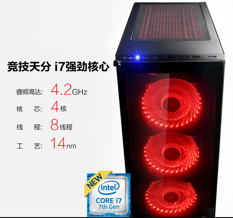 从配置来看,由于 i7芯片的强劲游戏天分加成,睿频高达4.2GHz,4核8线程和14nm的工艺保证了高端游戏机应有的速度。