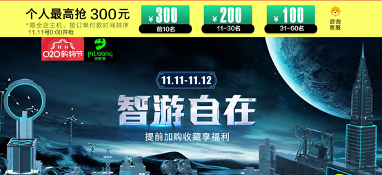 11月11日~11月12期间,凡是在苏宁易购名龙堂旗舰店购买主机的玩家,可无条件先领取购机优惠券,11月11日0:00当天前60名付款用户还将获得更多优惠价,最高可立减300元。