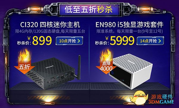 本次索泰一次性拿出ZBOX CI320和ZBOX EN980两款产品参与了超级秒杀活动,ZBOX CI320四核主机可以说是索泰首个真正无风扇,采用被动式蜂巢散热的迷你PC系列产品,给玩家带来O分贝O噪音的超静音效果,4G的内存,120G的固态硬盘容量,其在性能上也毫不逊色,值得一提的是,半价秒仅899!另外一款ZBOX EN980内置了intel第六代的酷睿i5处理器,采用NVIDIA的GTX 980显卡,同时,为了保证静音,更是采用水冷方案,可以说是一台性能强劲,静音迷你的小主机,双11 6折秒仅5999!仅限4台!