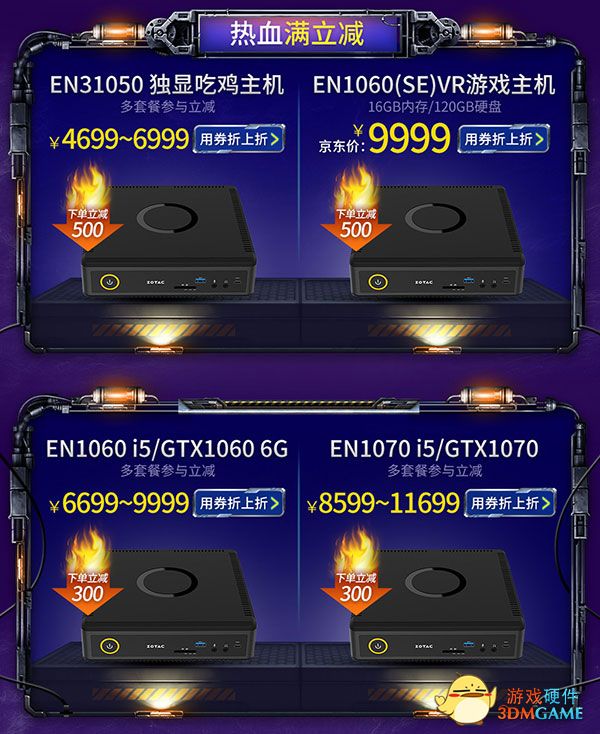 超级立减优惠也是本次索泰ZBOX双11优惠活动的一大亮点,在活动期间,只要购买索泰ZBOX EN31050或EN1060(SE)两款迷你PC主机中任意一款,即可立减500!而购买ZBOX EN1060或ZBOX 1070即可立减300!