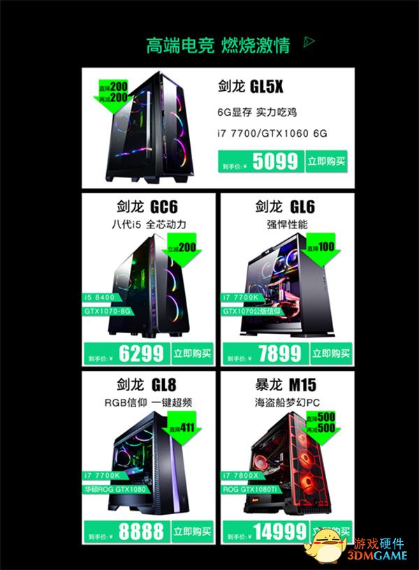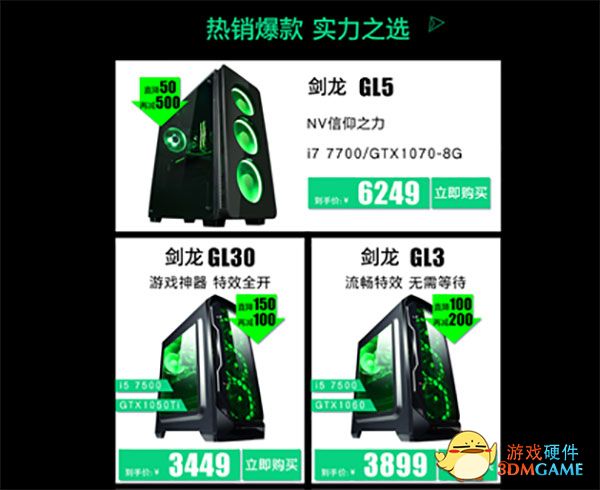 而备受玩家欢迎的剑龙GL5,这次更是直降50再减500。搭载GTX 1070显卡,采用全新的工艺和技术,卓越的游戏性能让玩家获得不俗的游戏体验。此外它还采用了西数的固态硬盘,让数据读写速度“6”到飞起,而SLC缓存技术提高WD SSD的写入速度,让你轻松浏览网页和畅玩游戏。