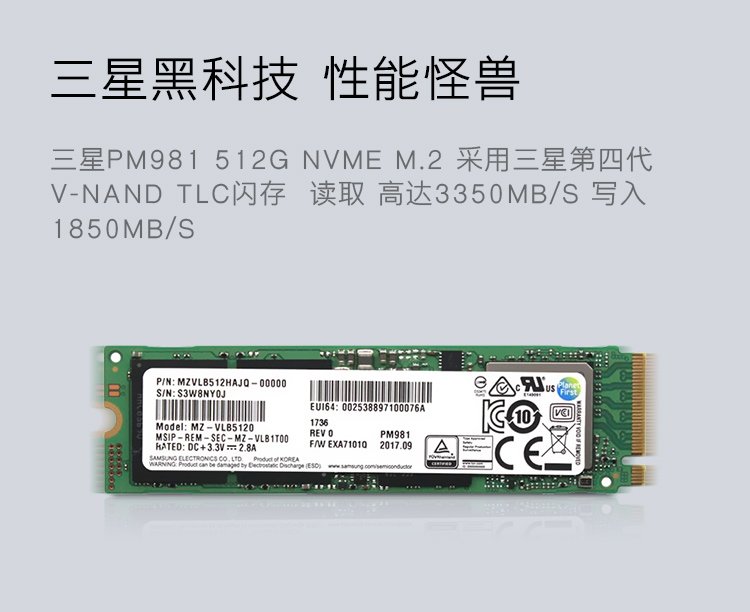 主机在硬盘方面更是采用最新的三星PM981,相比常见的120-250G,512G的容量足以存放更多游戏与软件,并且三星PM981支持NVME 协议,无论读取还是写入都有着惊人的速度,让你游戏载入和软件运行的速度大大提升。