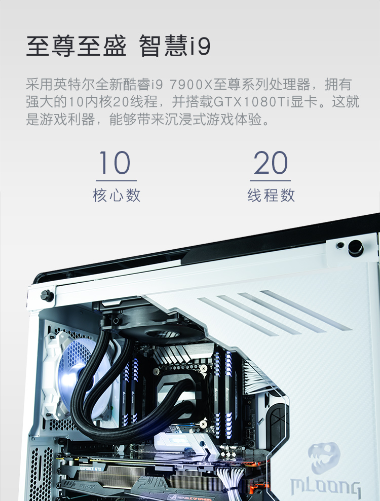 主机搭载了至尊酷睿i9-7900X处理器,拥有10核20线程,睿频高达4.3GHz,更配合旗舰级GTX 1080Ti显卡,无不显示出主机的强大。主机面对各类大型游戏,都能轻松应付,让玩家获得更好的游戏沉浸感,是游戏发烧友们的游戏利器。加上使用海盗船的一体式水冷,拥有双SP 120L PWN风扇与Corsair Link监控和控制功能,能够实现更高的液冷CPU冷却性能,让CPU获得更高的超频潜力。