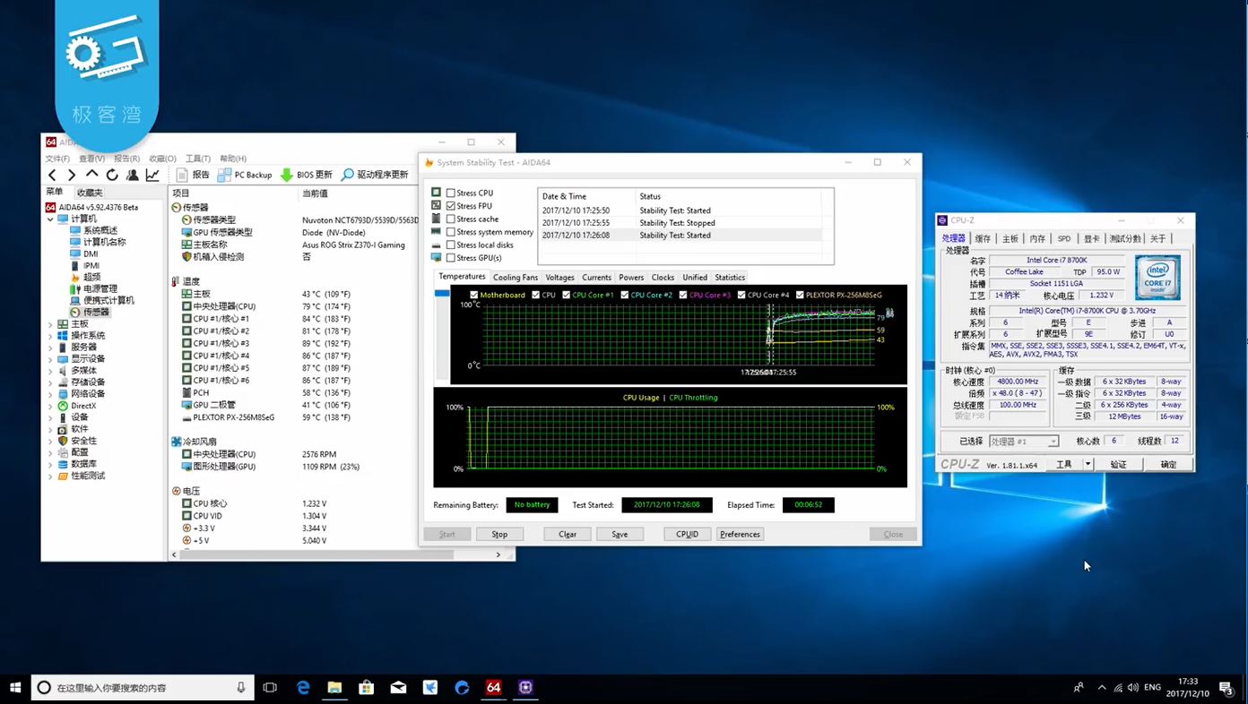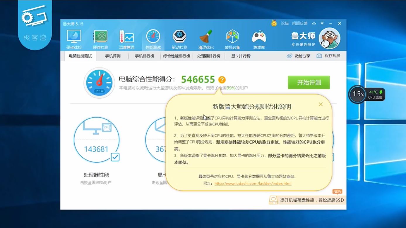 发烧友“极客湾”开机后,还对i7-8700K超频至4.8GHz,内存条超至4273MHz,鲁大师跑分高达546655分。