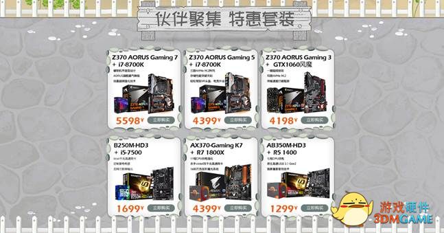 值得各位同学注意的还有板U钜惠套装,不仅有十分优惠的价格,也是纠结症患者的福音,再也不用纠结哪个主板搭配哪个CPU了。AORUS Z270X-Gaming 7作为Z270芯片组高人气型号,采用加强型11相CPU供电设计,板载Killer专业游戏网卡、Intel千兆网卡双网卡,配备了创新3D音效芯片的魔音音效系统,不仅规格配置给力,拓展性也足够强。在个性定制方面,还搭载了1600万色RGB炫彩魔光系统及可更换式镭射雕刻导光条,轻松实现个性定制体验。搭配i7-7700K处理器,能够应对玩家的绝大部分应用需求。预算稍低的玩家可以考虑B250M-HD3主板+i5-7500处理器套装,无论办公日用还是主流单机都能胜任。