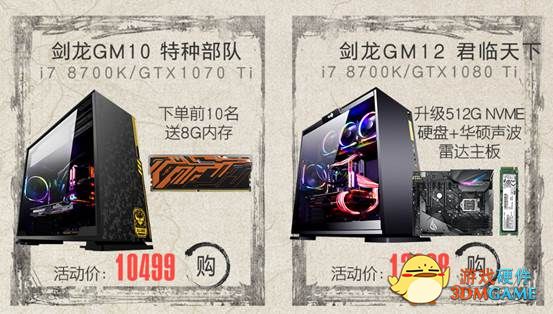对于高端游戏玩家来说,这款名龙堂与华硕合作的主机非常值得入手,这台整机搭载英特尔第8代处理器i7-8700K,配合华硕特种部队电竞主板,让玩家的游戏体验上升不止一个台阶。现在下单前10名还可享有将主机原8GB内存升级至16GB大内存的超值优惠,尽享大内存带来的流畅游戏体验。