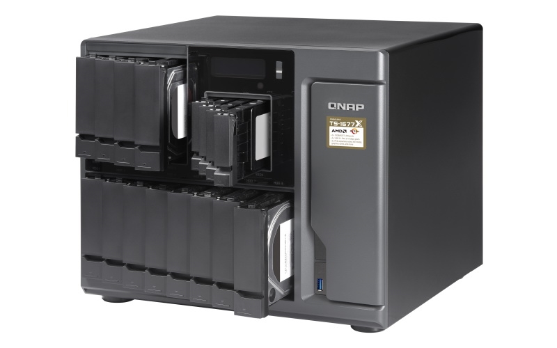 然而现在QNAP带来更强大的NAS,加多了4个盘位,而且传输带宽还高了很多!该型号为“TS-1677X”,但是处理器仍然还是一代的Ryzen产品,可以选Ryzen 7 1700、Ryzen 5 1600、Ryzen 3 1200。