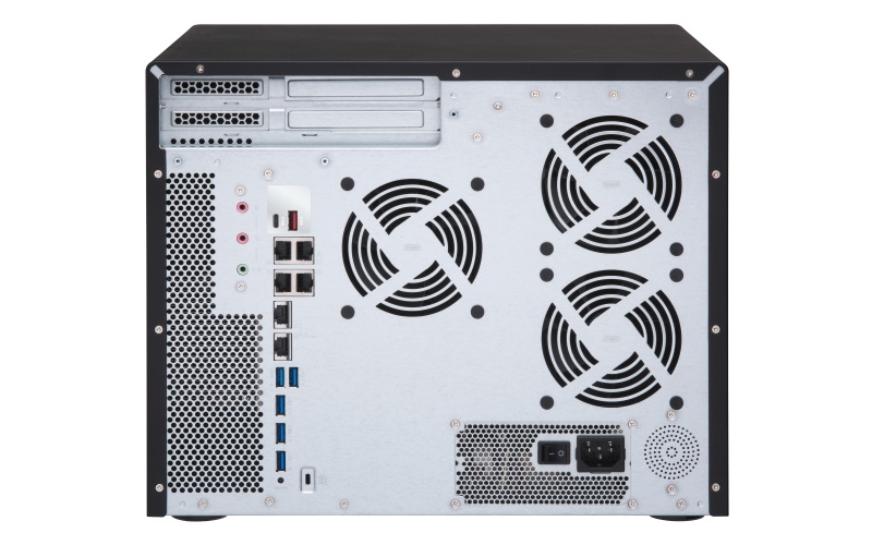 操作系统依然是自己的QTS 4.3,网络方面自带了两个10GbE网卡(估计是Aquantia),I/O方面是拥有7个USB3.0、Type-A、1个USB 3.0 Type-C接口,电源功率达到500W。