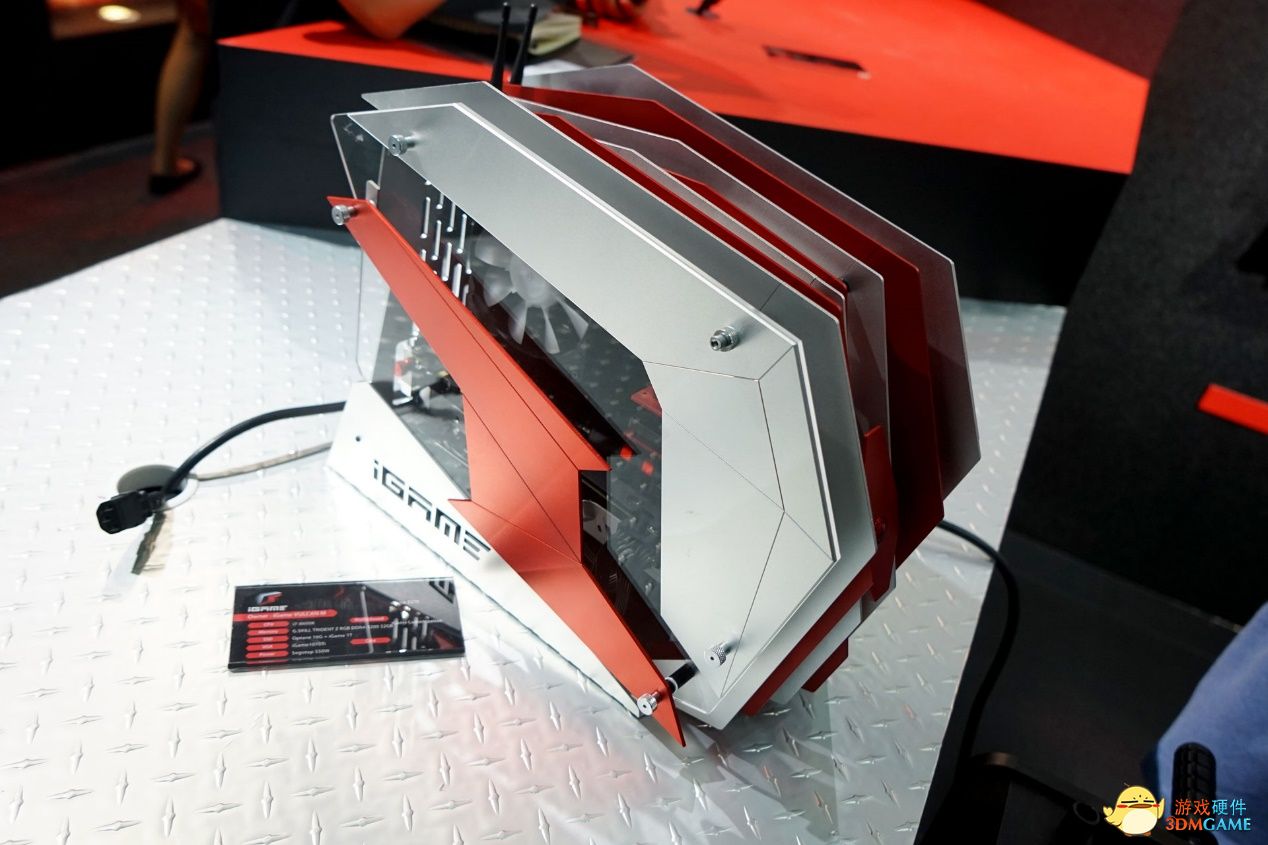 随后iGame整机产品亮相,亮相的第一款iGame整机产品以新iGame LOGO作为整体外形,极具质感的金属构架搭配上红白的配色及喷漆带来强烈的视觉冲击,让人不由自主的被这款主机吸引。