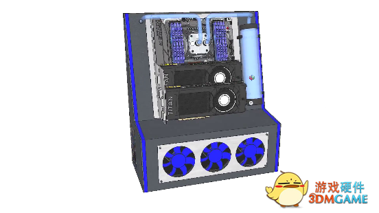 此工程始于NVIDIA早先设计的一份草图,草图中两块 GeForce GTX 1080 Ti 分别置于前方和中心部位。