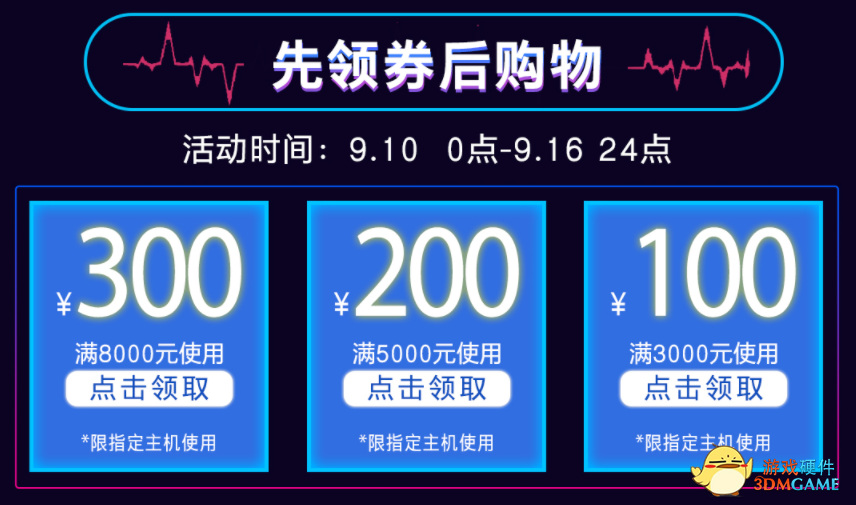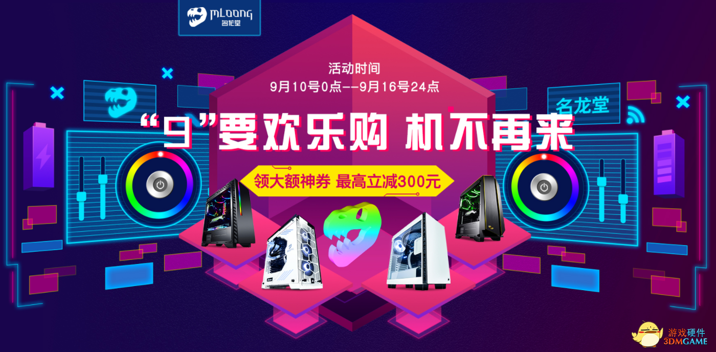 在9月10日-9月16日活动期间,登录名龙堂京东自营旗舰店领取优惠券,购买指定主机可立减高达300元,让玩家们能以超值的价格将心仪的主机抱回家。