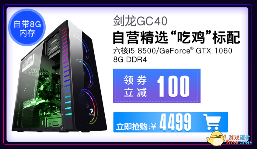 除了新品之外,名龙堂的爆款主机剑龙GC40也是十分值得入手的,该主机采用英特尔酷睿i5-8500处理器,并搭配Geforce GTX 1060显卡,为游戏提供充足的火力,助力玩家轻松吃鸡。剑龙GC40现在领券到手价仅需4499元,让玩家以超值的的价格就能购入“吃鸡”神器,名龙堂可谓实力宠粉。