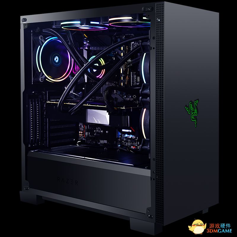 雷龙系列主机将搭载雷蛇战斧机箱,全黑机箱的正面板中部是充满信仰的雷蛇LOGO,低调中透出点点不凡。而机箱底部则搭载了幻彩RGB灯效,与雷蛇其他产品的灯效搭配起来相得益彰。机箱侧板采用了整片透明玻璃,让其中的硬件清晰展现在玩家们的面前。不得不说,这款搭载了雷蛇战斧机箱的主机确实是低调中透出满额的信仰、沉静中挥洒出不羁的张扬。