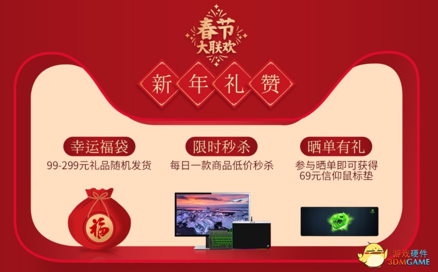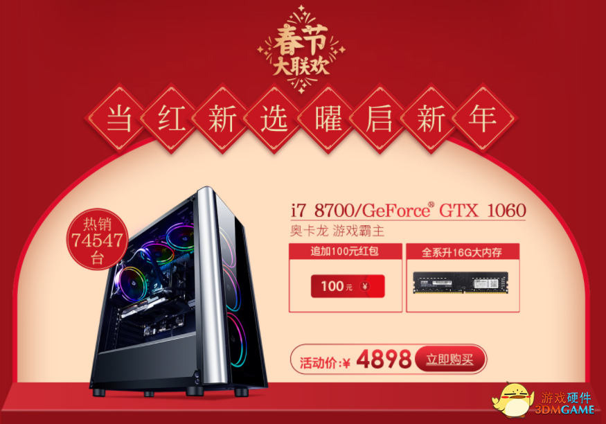 春节作为中国最盛大的节日,不但象征着阖家团圆,更是有着兴旺,以及人们对未来的美好希冀。而对于游戏玩家来说,他们未来的希望当然是拥有一台更加高性能的主机,玩更多的游戏。著名潮牌PC名龙堂为了恭贺新禧,同时也让玩家能够“配齐”游戏装备,特此开启新年大联欢活动,人气主机不仅拥有超值活动价,更有幸运福袋限时秒杀,喜欢的玩家还不快快行动!