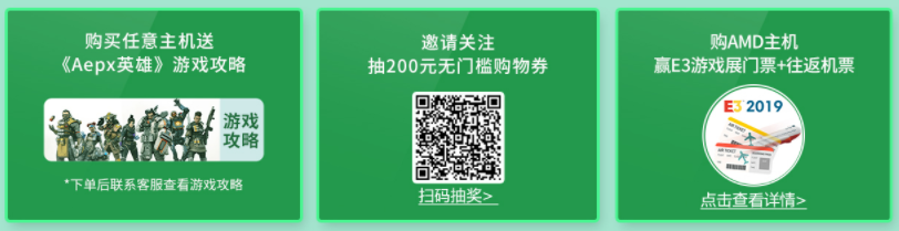 即日起,登录名龙堂天猫旗舰店,购买任意主机就送时下热门的大逃杀游戏《Apex英雄》攻略,助你轻松当游戏大神。扫码邀请关注名龙堂还有机会抽200元无门槛优惠券,购买AMD主机更可能获得E3游戏展门票和往返机票。多重福利等你来领,名龙堂的宠粉能力果然不一般。