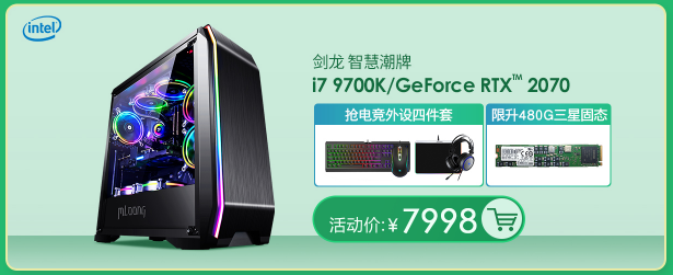 这款名为剑龙的主机同样优惠力度不小,标配版仅需7998就能入手。该系列主机标配九代酷睿处理器i7-9700K以及 RTX 2070显卡,从容应对热门大型3A游戏的挑战无压力。不仅如此,主机还配备了16G大内存以及M.2 SSD,瞬秒传输快速载入游戏,拒绝卡顿坑队友。现在购买剑龙G6主机,前50名购买的用户还将获赠价值899元的电竞外设四件套,一次性将所有电竞装备都带回家。