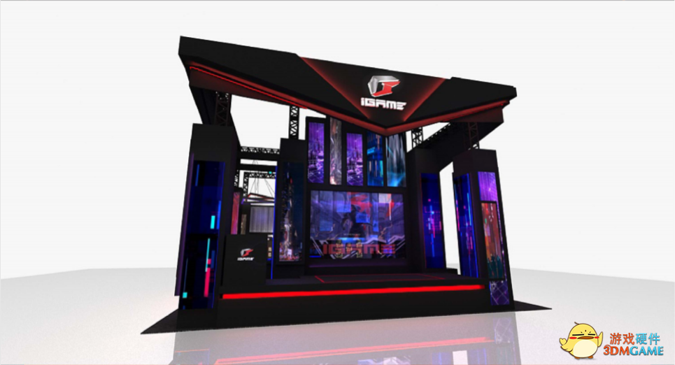 今年,七彩虹展台延续并改进具有中国传统文化特色的飞檐造型,在整体形象上使其更加具有未来感,打造出一个具有赛博朋克风格的多维立体空间展台。展台四周布置着众多极具科技感与未来感的iGame视觉画面,让每一位到场嘉宾宛如置身iGame世界。在展台中心还设立有一个神秘的“私享空间”,非常欢迎各位届时莅临展台参观与体验。