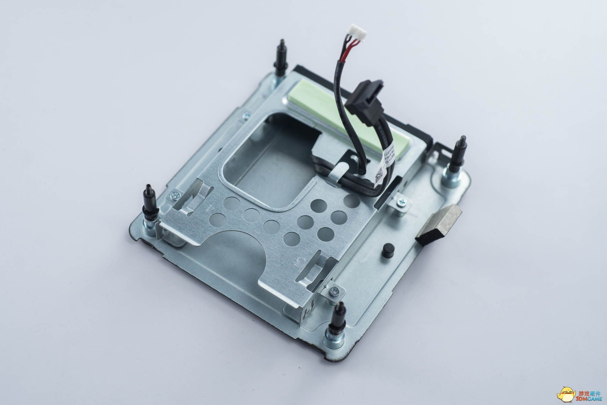 整机拆解还是相对比较轻松的,拧松底部的四颗螺丝后就可以轻轻抬起底盖,这里要注意下半部分和主板的连线。底盖上本身是一个2.5英寸的硬盘位,用户可以自行选择标准的硬盘产品来组合配置。
