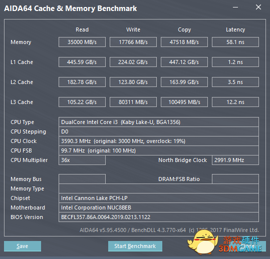 配置方面,我们这次拿到的这款NUC8i3BEH6搭载的是Intel Core i3-8109U处理器,核心显卡为Iir,这颗处理器为双核四线程规格,平时使用的时候双核可以睿频到3.6GHz左右。这个配置是整个系列中最为入门的一款,但尽管如此整机的性能在面对办公或是比较的应用中使用起来还是非常够用的。