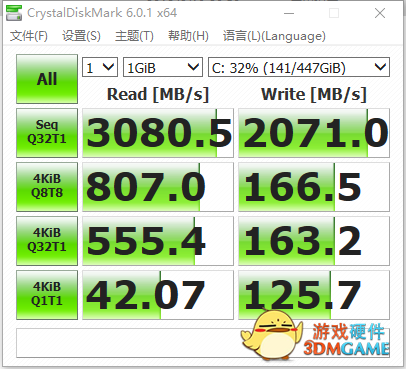 硬盘和内存部分的测试其实和这台NUC本身关系不大,因为这部分硬件需要玩家自行购买,我们这台测试机中使用的是来自宇瞻的内存条以及固态硬盘,其中内存频率为2400,硬盘部分是一块支持NVMe协议的M.2 SSD。