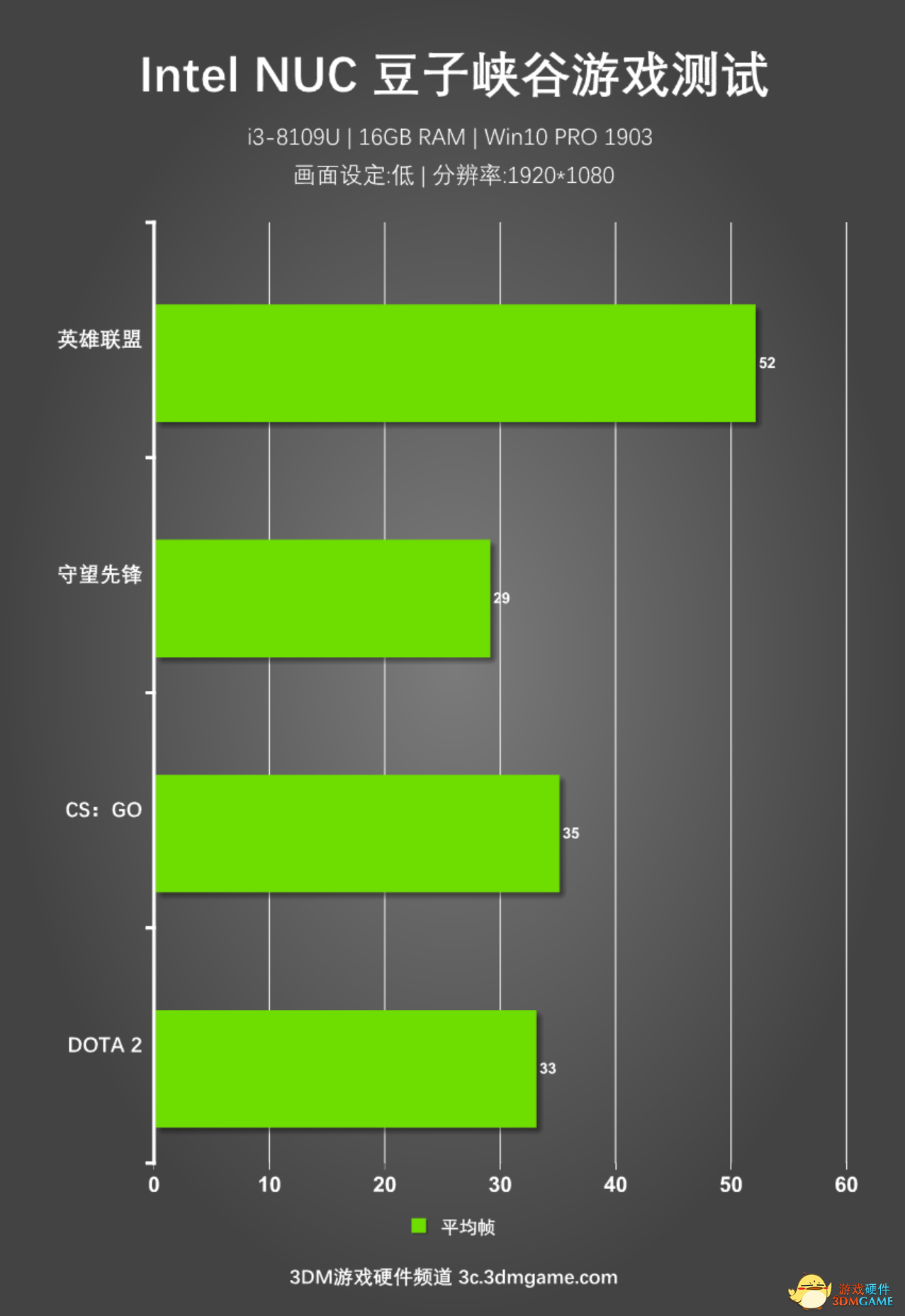 以上的测试成绩主要记录了游戏内包含众多战斗场景下的环境而非游戏中刚出场的帧数,四款游戏全部采用1080p分辨率、最低画质设定。成绩上只能说打个LOL还勉强能玩,其他游戏基本上在人多的环境下是不可用的状态,更高的i7版本NUC可能会有所改善,但整体的数据不会进步太多。不过考虑到这款产品自身的定位,其实玩不了游戏也无伤大雅。