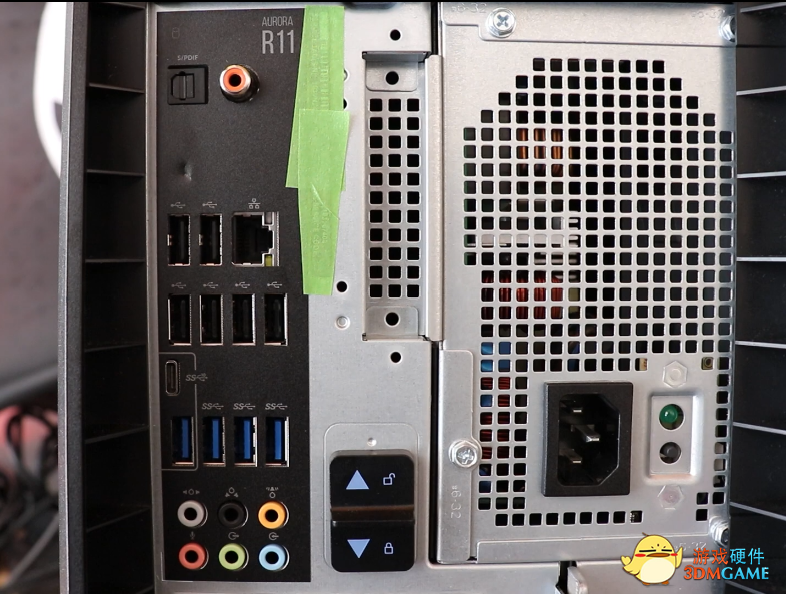 前面板除开机键外,分别拥有2个Type-A USB3.1的端口以及2个支持PowerShare技术的Type-A USB3.1和Type-C USB3.1端口。无论反向充电还是数据传输亦或是外设供电都可满足。另外还留有常规的耳机和麦克风的输出以及输入端口,满足玩家们的日常需求。