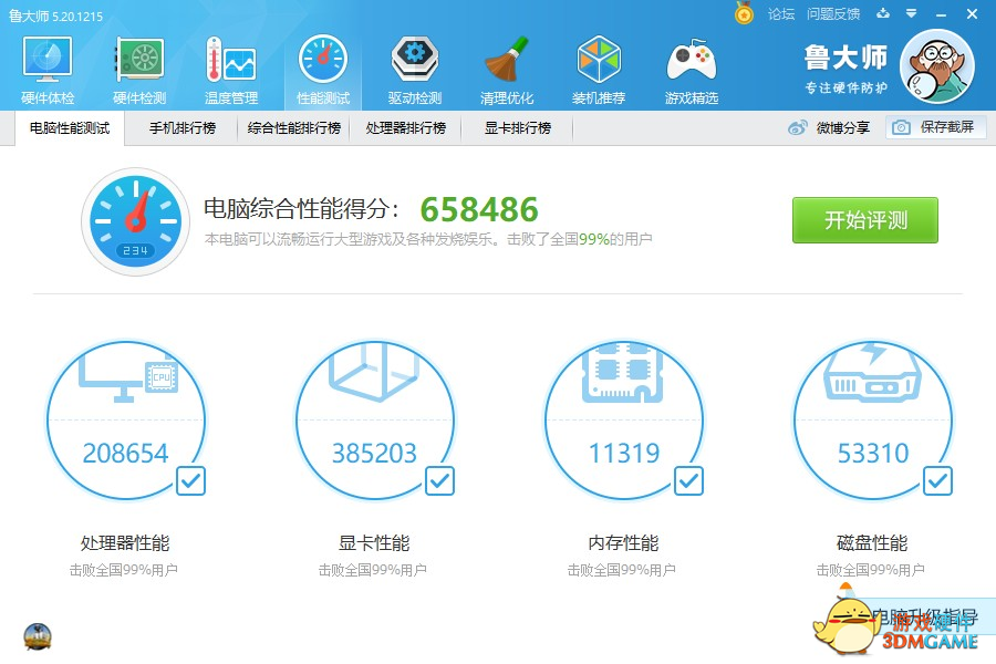 首先,我们在鲁大师的跑分中跑出了658486分出色的成绩。虽然鲁大师跑分未能达到专业水准,但在大多数玩家眼里,确实简单易懂。这样的分数或许大多数玩家看到后就能明白Aurora R11性能的可怕了吧。