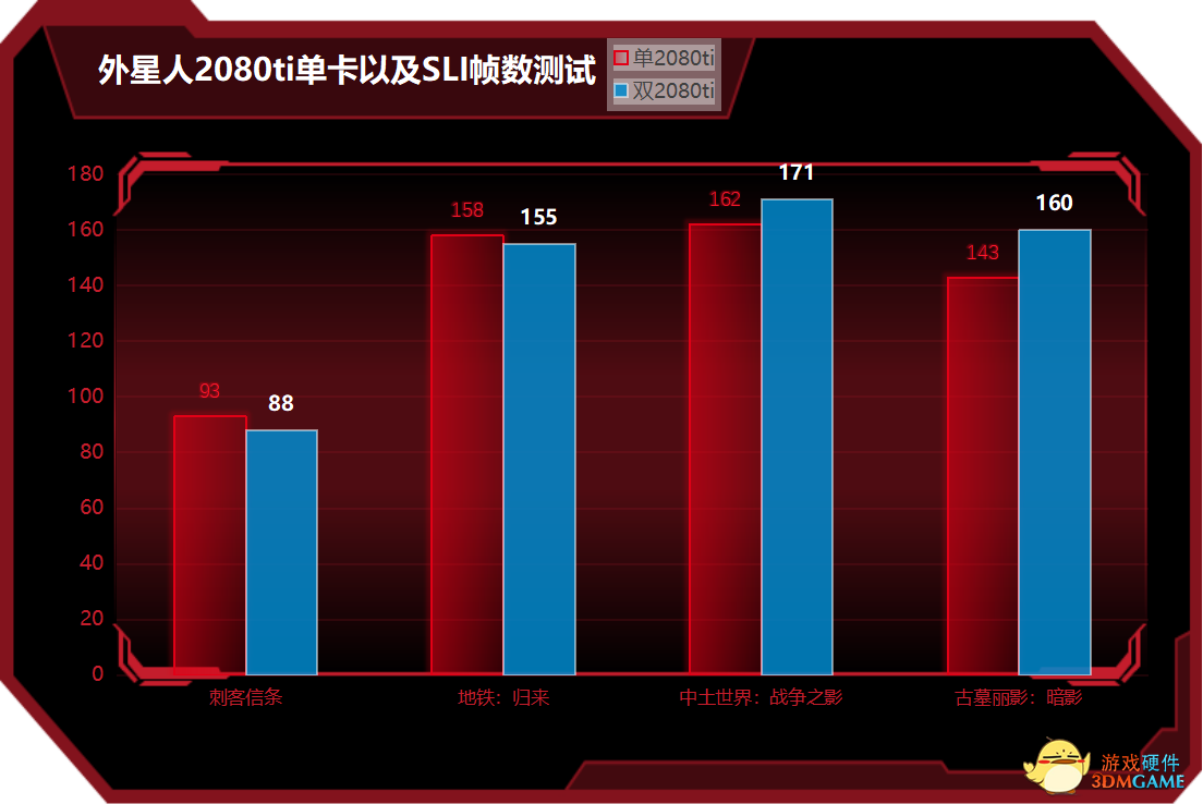 另外,由于Aurora R11使用了双卡的设定,我们也对于支持双卡的游戏进行了单卡和双卡的帧率测试。在结果上对于个人而言,单显卡和双显卡在1080P的分辨率下不能达到最完美的效果,如果显示器分辨率在2K甚至是4K的情况下,单显卡和双显卡的帧数会有质的区别。另外,我们在测试中将不支持SLI的《刺客信条:奥德赛》以及《地铁:归来》也同时进行了对比后发现,这两款游戏再DX11的模式下使用SLI会有下滑的情况。所以在应对不支持SLI的游戏时尽量要打开英伟达设置面板中的禁用SLI选项。