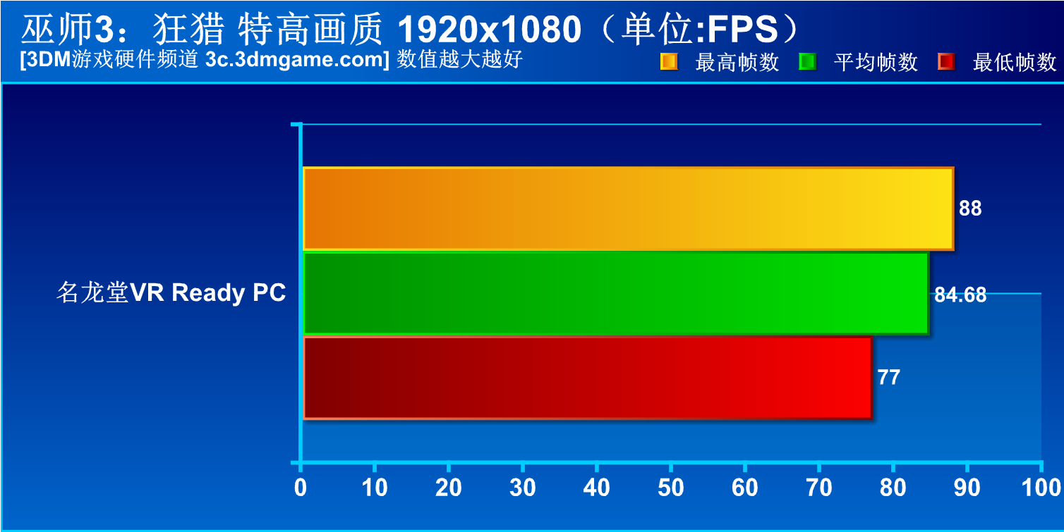 由于时间关系游戏测试笔者并没有进行太多,只挑选了几款手头就有的比较容易测试的游戏,第一款测试的是让笔者刷了三周目的《巫师3:狂猎》,为了方便测试我们选择了上图的场景,连续跑图30秒测试平均值。