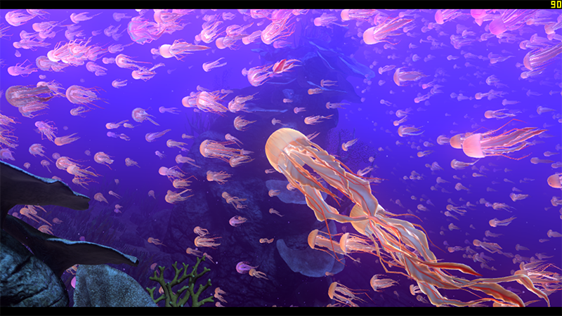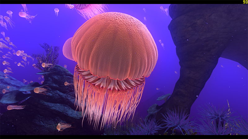 截图中的画面不是电影,而是实实在在的VR游戏,名字叫做《The blu》,游戏中并不需要玩家参与太多内容,而是任由游戏带领玩家走遍一个一个场景,所以这款游戏非常适合第一次体验VR的玩家,笔者可以保证这款游戏的画面绝对达到了惊艳的程度。