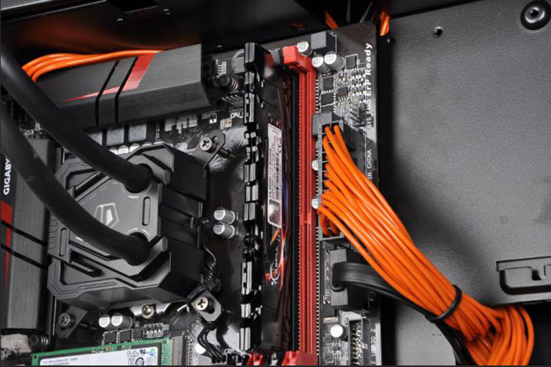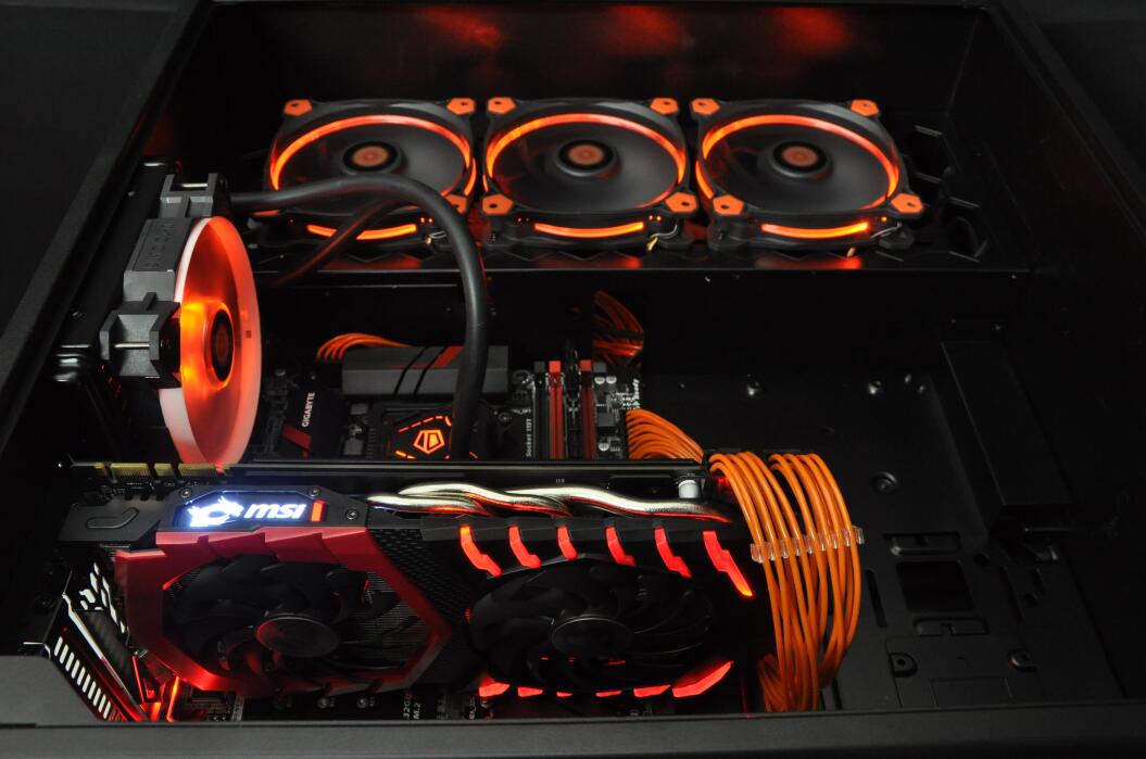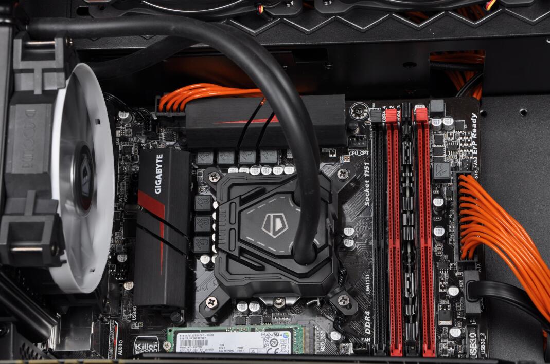CPU使用了平民神器i7-6700K,6700K强大的性能已经足够应对办公以及游戏需求了,CPU散热部分虽然没有选用分体水冷,但ID COOLING黑橙定制一体水冷也十分酷炫。