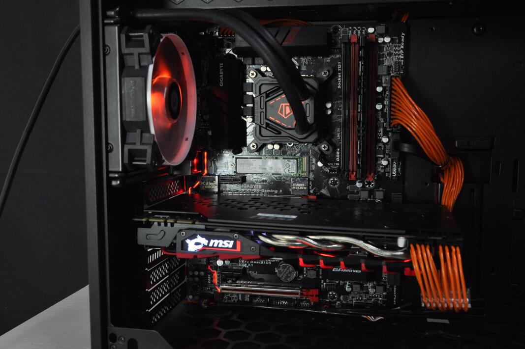 显卡部分则使用了微星红龙GTX 1070,微星的红龙系列在非公版中也属顶尖水平,而选择这款GTX 1070无论在性能上还是整体颜色搭配都很精妙。