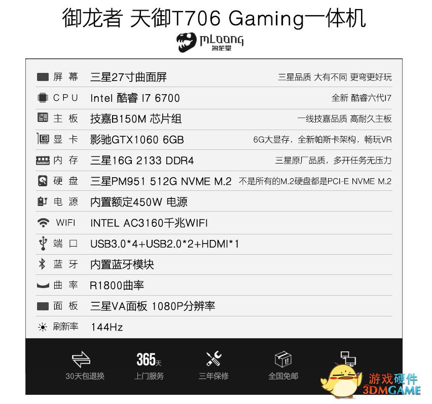 我们相信拥有足够诚意的御龙者天御T706可以在众多一体机甚至是游戏PC中脱颖而出!让大众消费者改变我们对曾今一体机的偏见与看法!