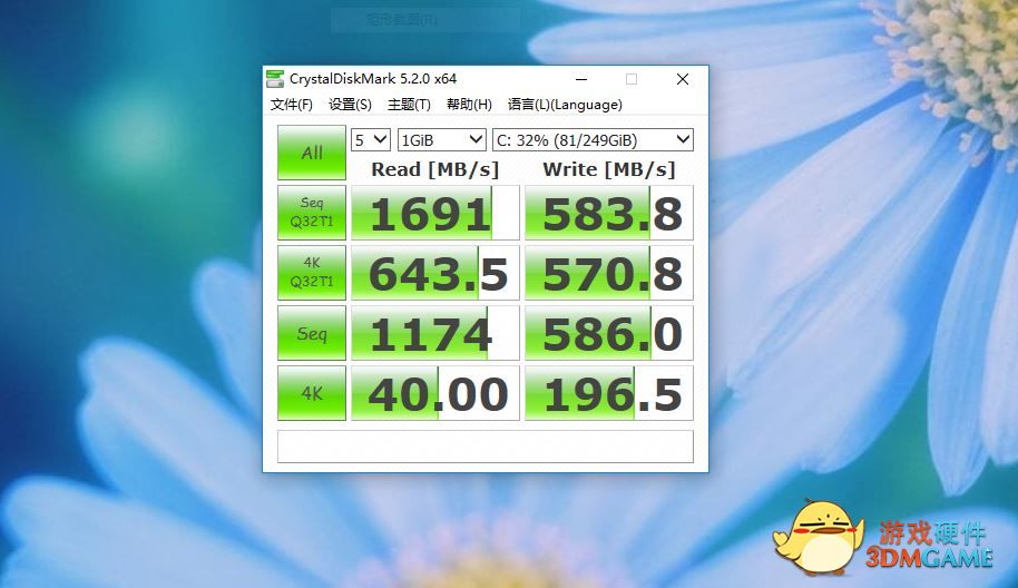通过CrystalDiskMark我们可以看出该款一体机所配备的M.2接口PCI-E硬盘的性能可谓是碉堡,读取速度可以达到惊人的每秒1.6g!意味着如果你将游戏装入固态硬盘可以大大的减少读条时间,也可以加快游戏场景的远景载入速度,让你玩游戏获得更好的体验!