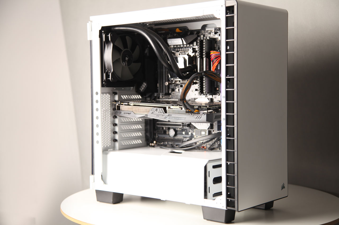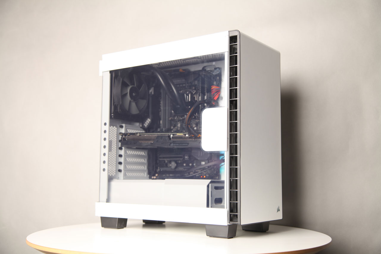 这就是主机名龙堂剑龙MC9的侧面,我们可以看到的是,以“拉门”的形式可以将主机内部打开,这十分方便我们去把侧门打开。从这角度看,“坦克”里的装备一览无余。以“透明”的形式,向我们展示了他的霸气般存在。而这霸气“躯壳”的主机箱是——海盗船400C全白名龙堂定制版!