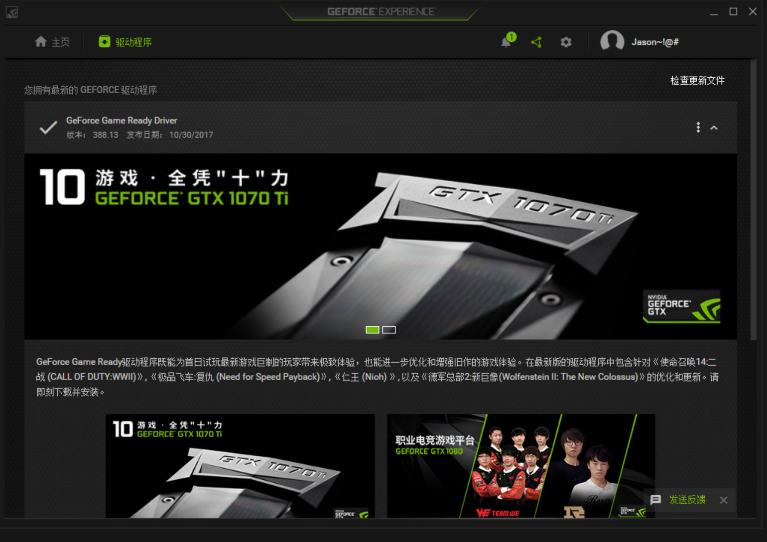 在测试之前,为了测试的准确性以及公平性,笔者先将显卡驱动升至最新388.13版本。