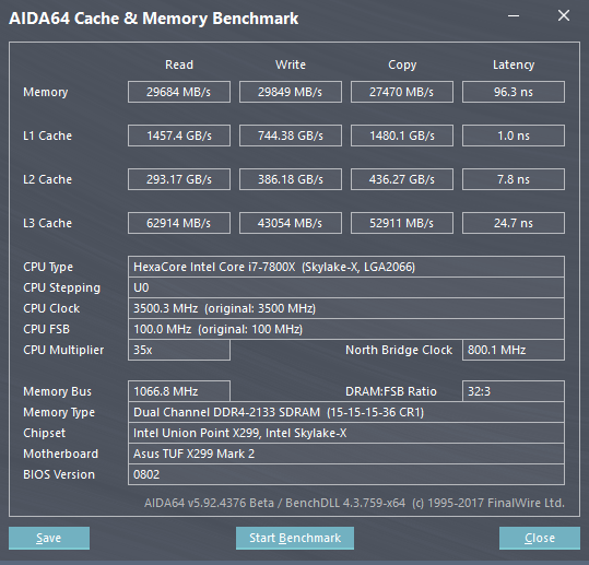 在内存测试中,海盗船 复仇者 DDR4 2666MHz ,可谓是“速度界的佼佼者”更何况双通道的海盗船 复仇者 DDR4 2666MHz 合择16G内存。29684MB/s的读取速度以及29849MB/s的写入速度,已经超越了很多玩家的速度了!
