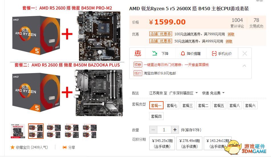 这里主板推荐,笔者选择“CPU+主板套餐”!