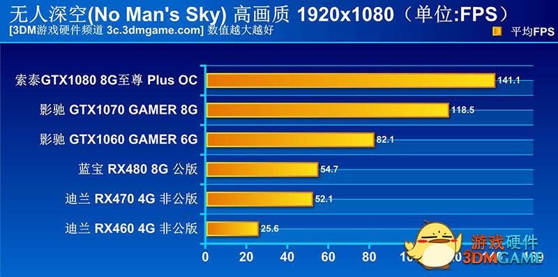 从表格中我们可以看出如果想畅玩无人深空RX460显得力不从心,而RX470的表现着实不错,帧率已经摸到了RX480的屁股,同时价格方面在1599元上下,正好符合我们的选择,当然如果你们不会骂我是卡巴加钱党奸细的话郭少还是建议你们上GTX1060,毕竟加400元对于性能的提升还是蛮大的呢!