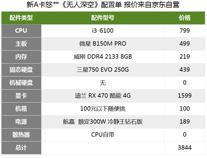 最近郭少很多的小伙伴儿们迷上了无人深空这款游戏,希望郭少可以给他们出出点子如何升级一下他们的电脑,我跟他们说得了吧你!无人深空最低配置要求是GTX480显卡,相当于是gtx660的性能,你一个GTX950的凑什么热闹,刚刚压线可以玩的啊?细问之下原来是找借口给自己升级主机了,想换新的,显卡想换AMD!我说可以啊,居然向农企靠拢啦!那么我们今天就配一台AMD新显卡的PC,让你1080P特效全开玩无人深空!