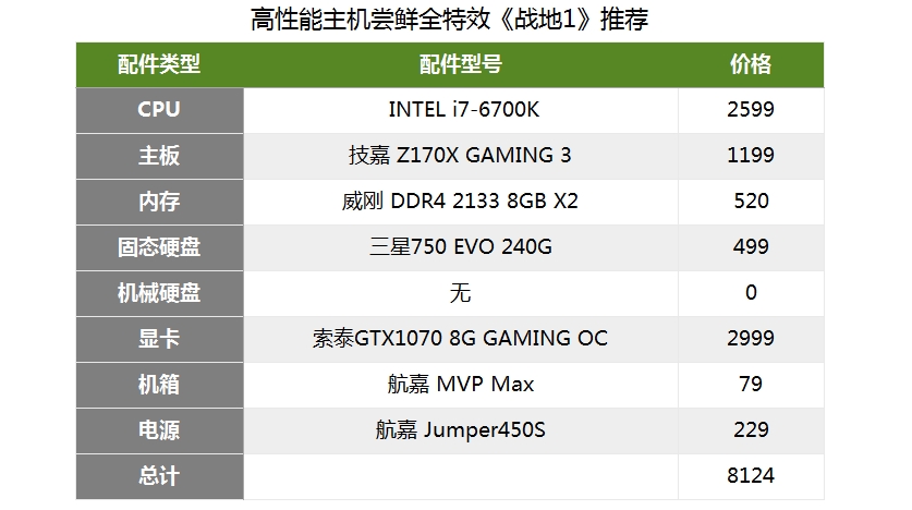 该款游戏开全特效运行的代价真的是有点大,而且因为是BETA版,也有着各种各样的BUG,但是正式版发布之后预计会有所改善。郭少还发现在贴吧中很多朋友使用GTX970显卡的朋友却是没有遇到任何的BUG,如果想畅玩该款游戏的朋友不妨去收一个二手GTX970玩玩,但是郭少并不鼓励这种做法!好了本期的攒机推荐就到这里,希望大家都能攒出适合自己的主机!