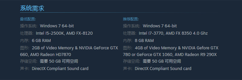 从官方配置来看,这一款新作将推荐配置拉升到了GTX 1060,并且需要4G以上显存,要知道GTX 1060发布也并没有多久,转眼间9系就从主流成为频临淘汰的显卡了,不得不让笔者怀疑游戏公司和硬件厂商之间有一些不可告人的PY交易。