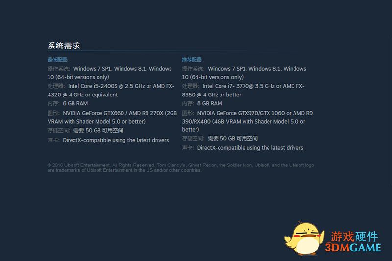 由于笔者在游戏中不断遇到闪退的问题,所以很抱歉没有办法在Open Beta测试中给玩家带来第一手显卡测试,因此本期笔者根据Steam官方配置推荐来攒一套足够运行《幽灵行动:荒野》的游戏PC,另外在游戏正式发售(3月7日)后,笔者会将显卡测试结果为各位玩家奉上。